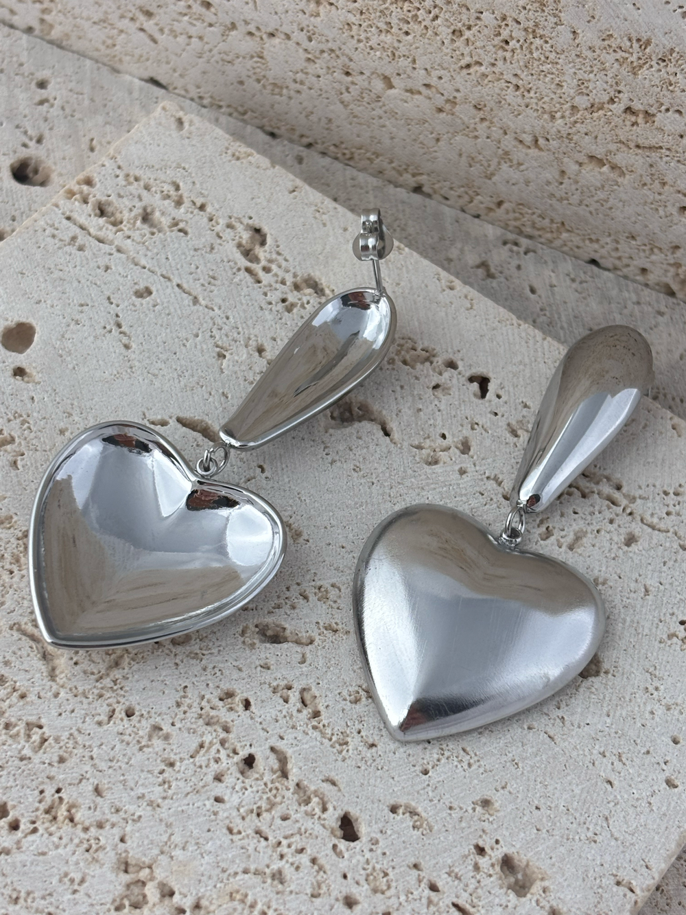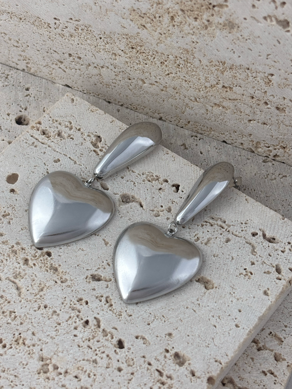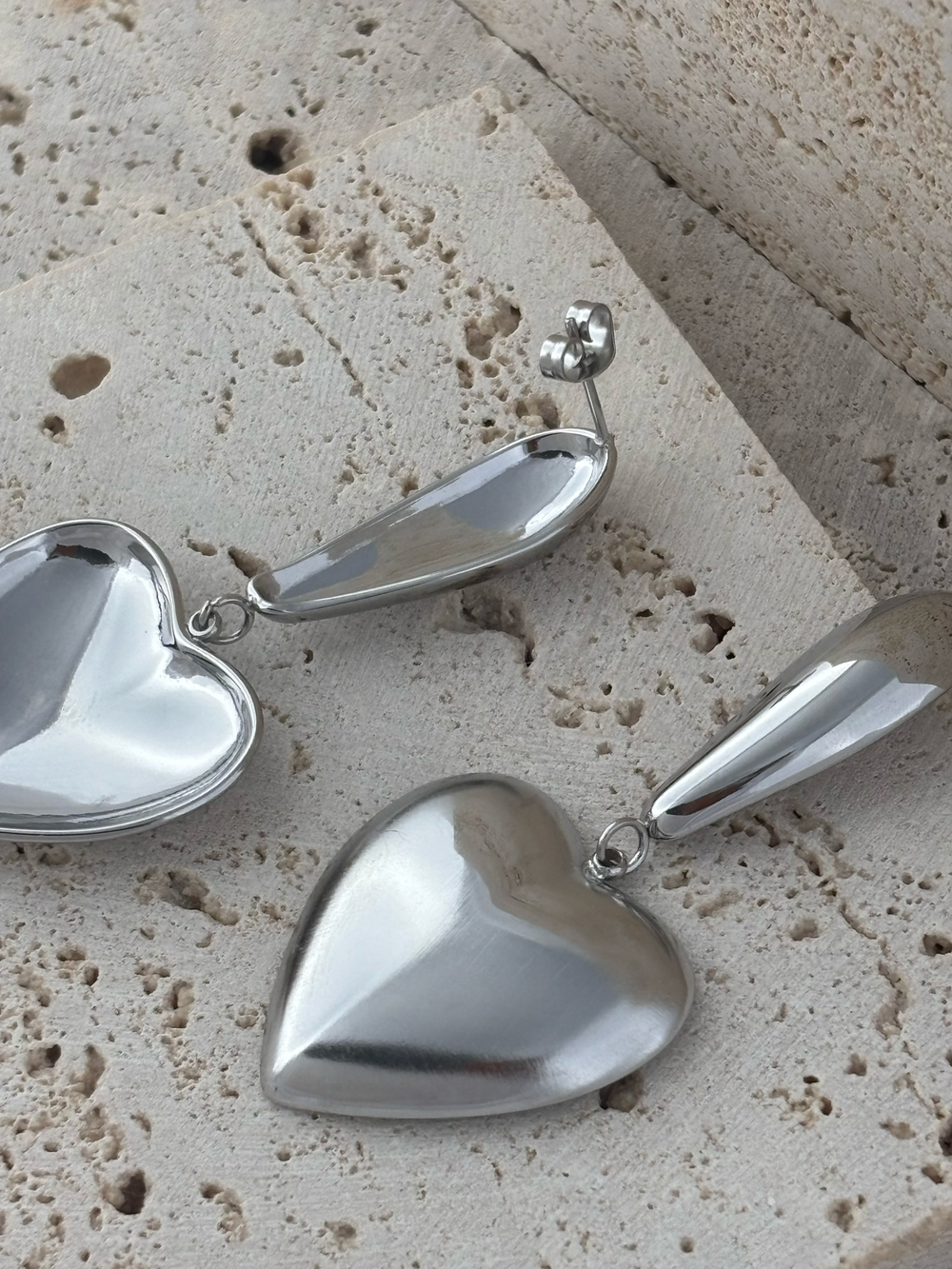 Parlak gümüş tonundaki büyük kalp formu ile modern ve iddialı bir görünüm sunar. Paslanmaz çelik yapısı sayesinde kararma yapmaz, uzun süre parlaklığını korur. Hafif ve rahat tasarımı gün boyu kullanım için uygundur; günlük kombinlerde de, şık akşam stillerinde de kolaylıkla öne çıkar.