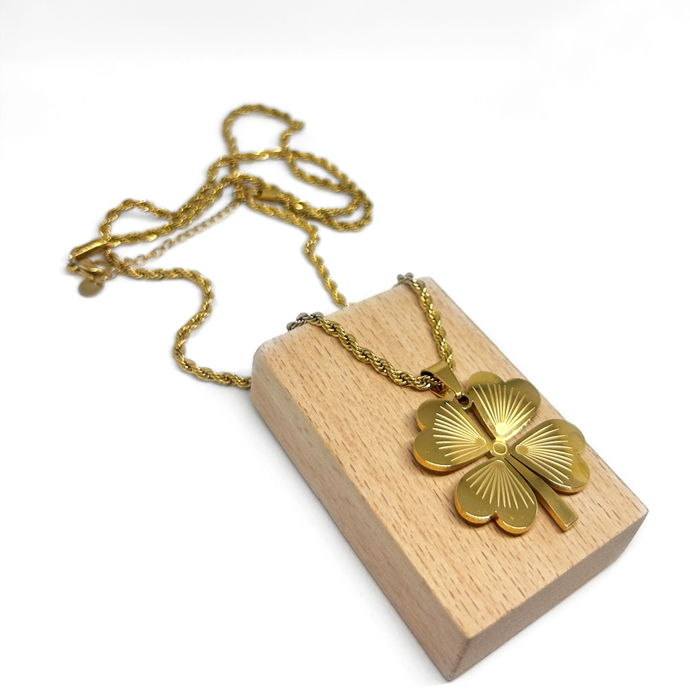 316L paslanmaz çelikten üretilen, altın kaplamalı yüzeye sahip Burgu Yonca Uzun Altın Kolye; kararmaz, suya dayanıklıdır ve günlük kullanıma uygundur.