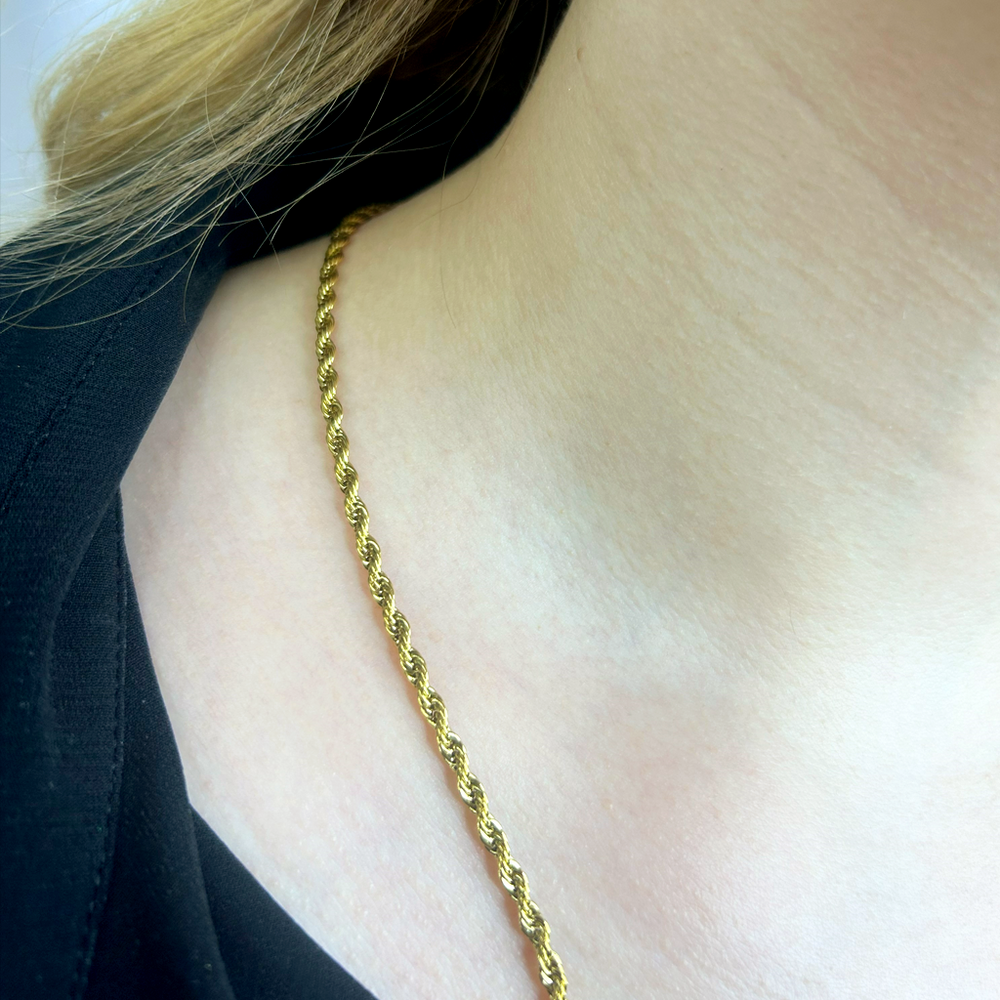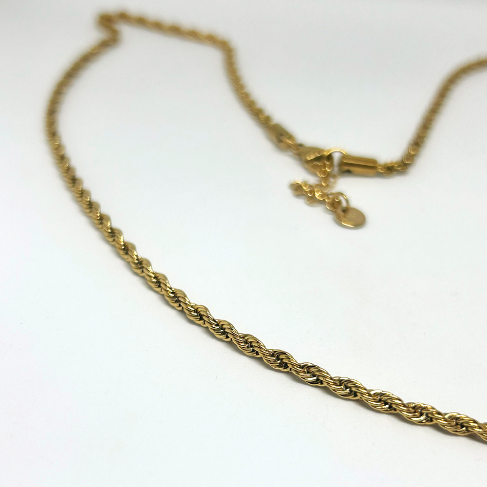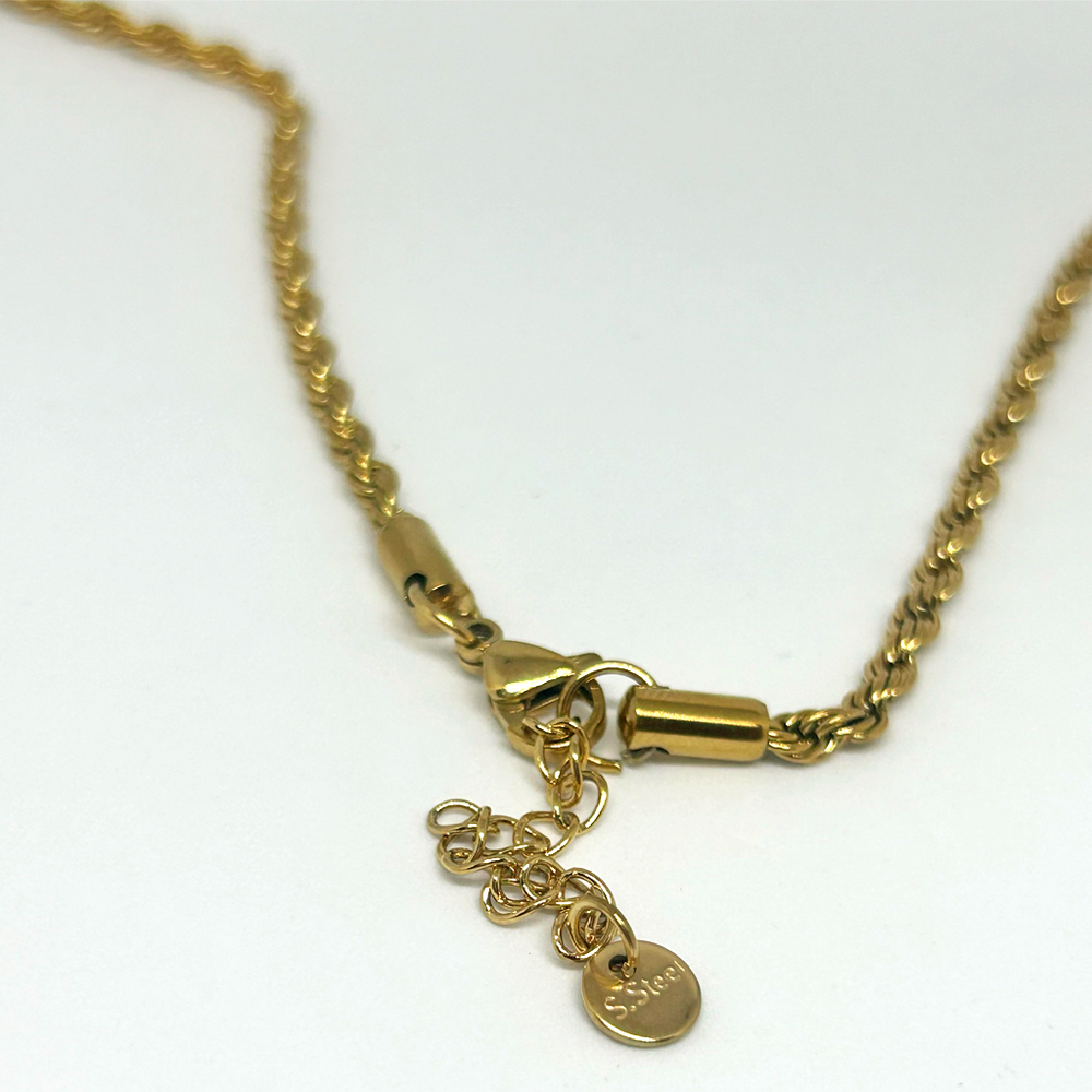 316L paslanmaz çelikten üretilen Klasik Burgu Uzun Altın Kolye; kararmaz, suya dayanıklıdır ve uzun süre parlaklığını korur.