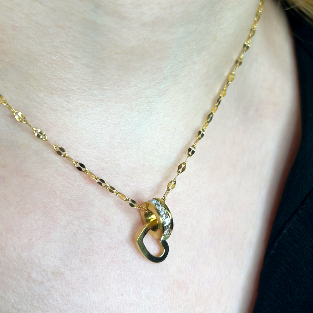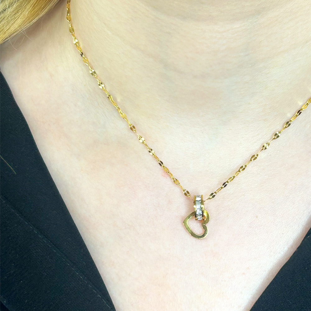 Minimal kalp figürünün zarafetini ışığı her açıdan yakalayan Singapur zincirin modern dokusuyla buluşturan şık bir tasarım. Günlük stilinize hem romantik hem de modern bir dokunuş katar.