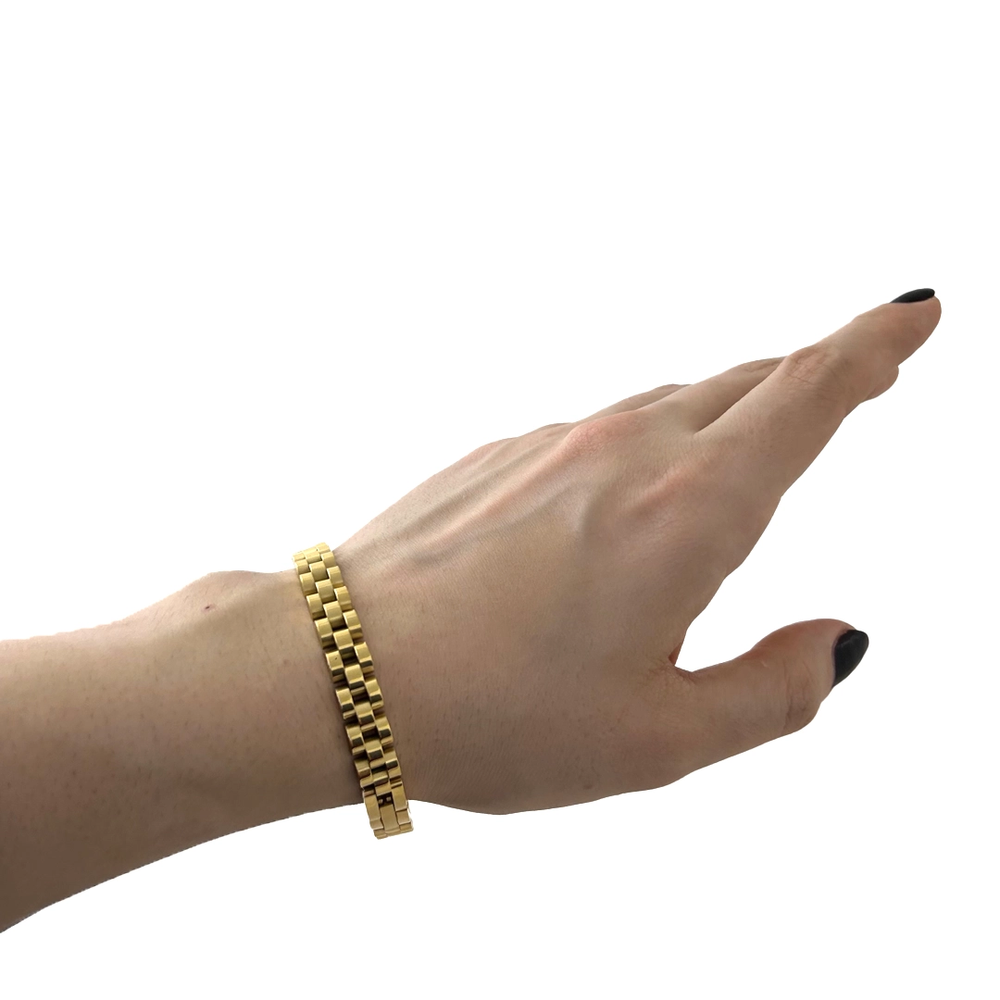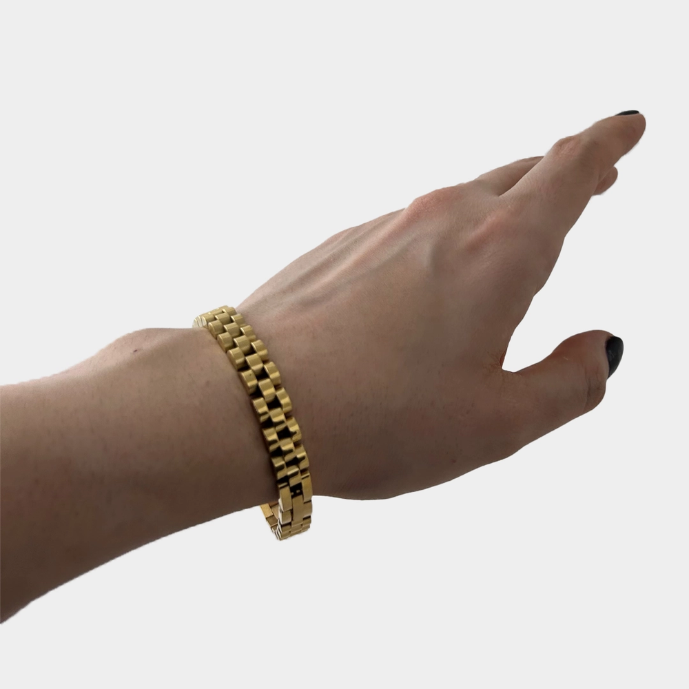 Modern kordon zincir dokusunu sade ve zarif bir görünümle birleştiren bu bileklik, günlük stilinize güçlü ama minimal bir dokunuş katar. Tek başına kullanıldığında şık, diğer bilekliklerle kombinlendiğinde ise karakterli bir görünüm sunar.