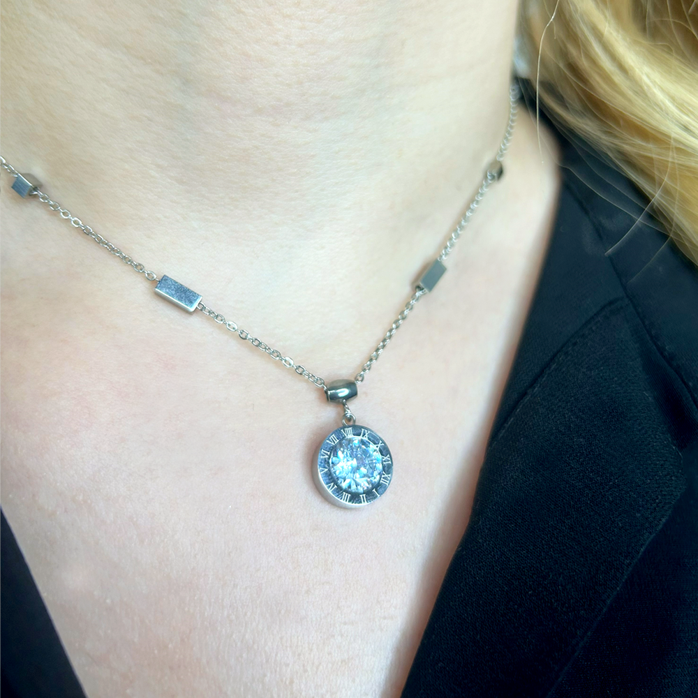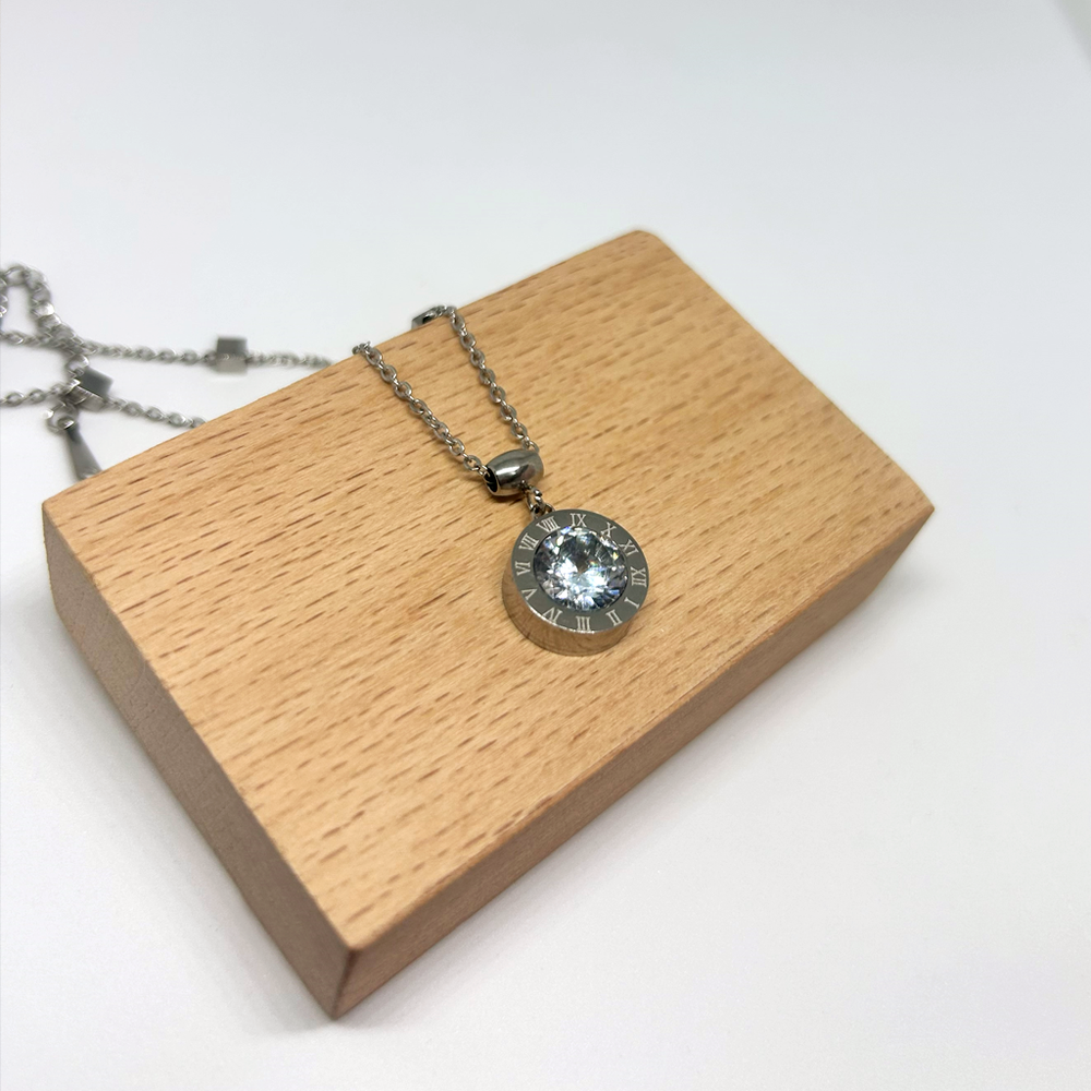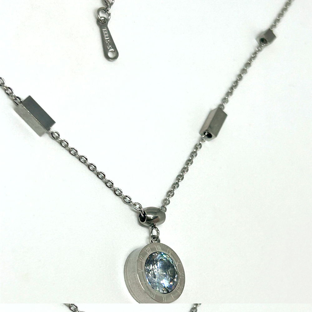 316L paslanmaz çelikten üretilen Roma Işıltısı Gümüş Kolye; kararmaz, suya dayanıklıdır ve uzun süre parlaklığını korur.