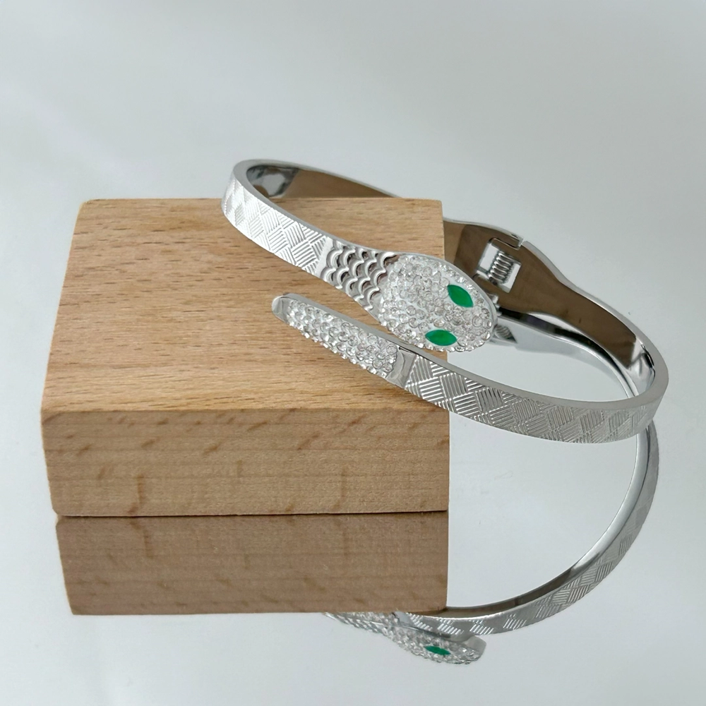 316L paslanmaz çelikten üretilen Yılan Gümüş Kelepçe Bileklik; kararmaz, suya dayanıklıdır ve uzun süre parlaklığını korur.