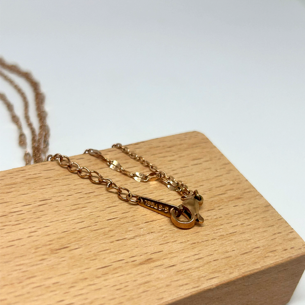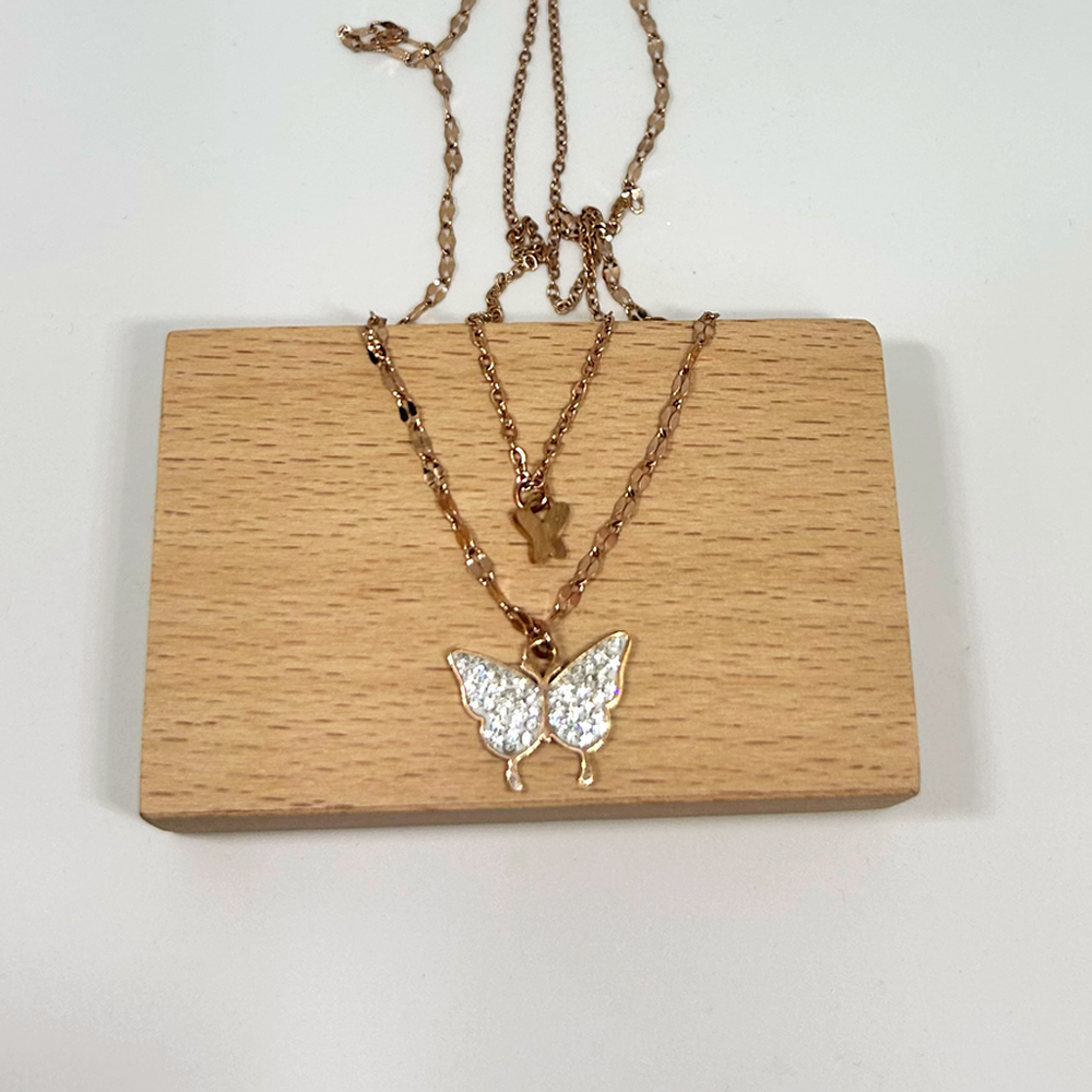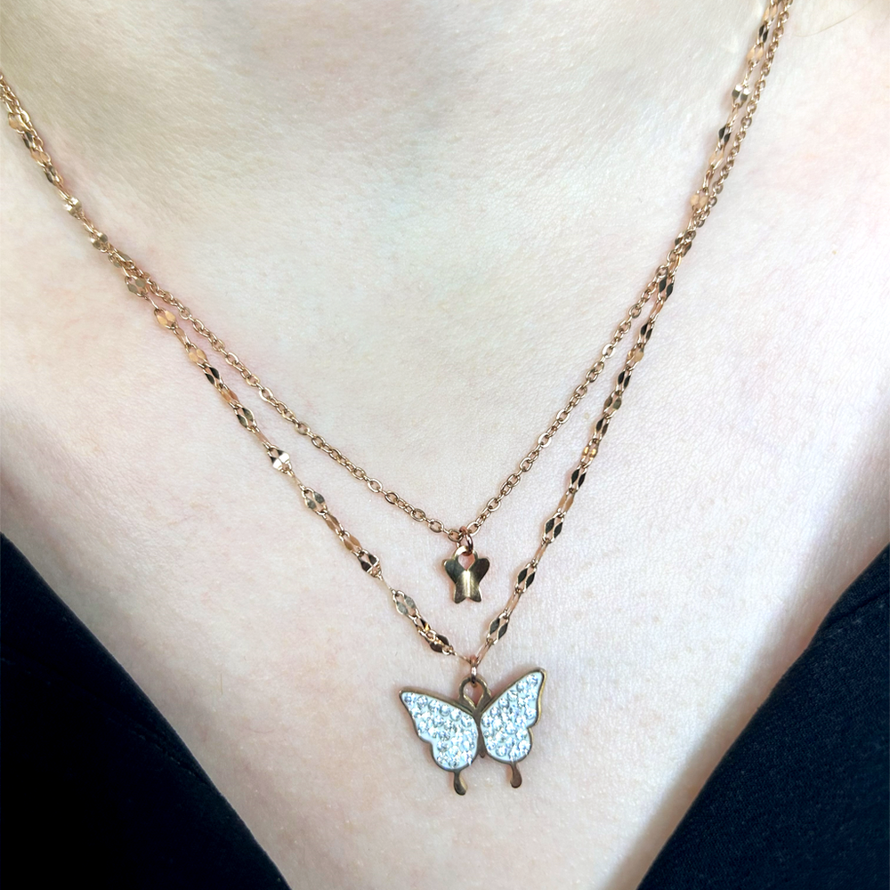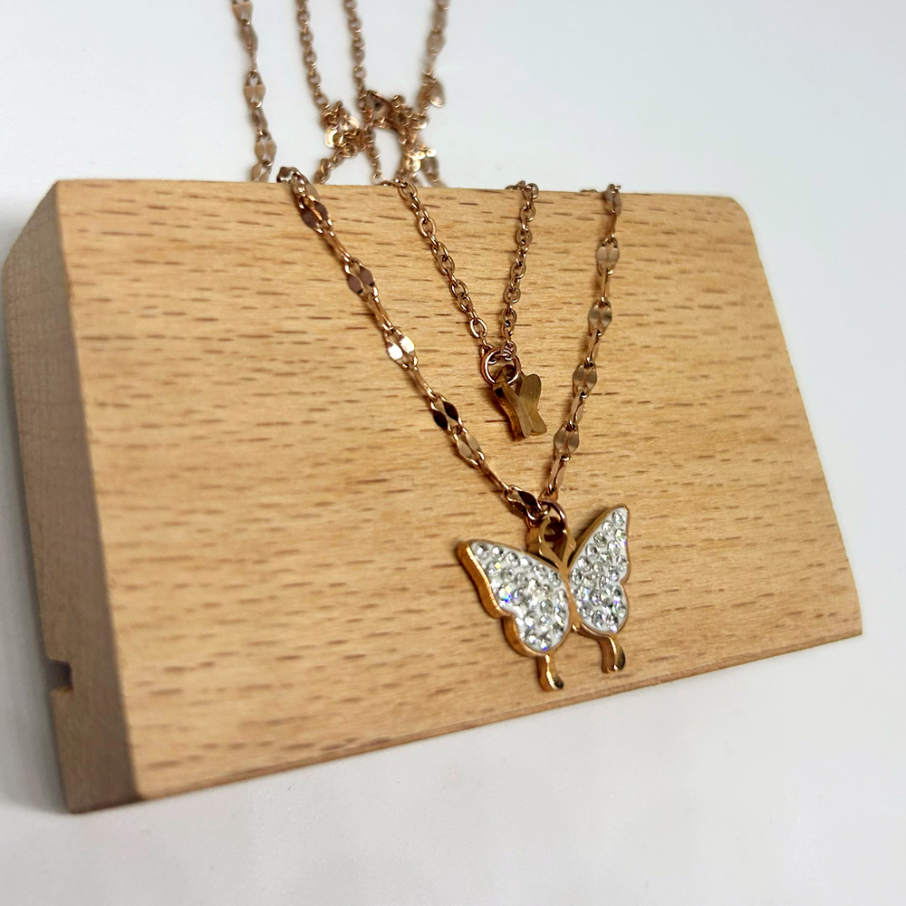 316L paslanmaz çelikten üretilen Taşlı Kelebek Rose Altın Singapur Kolye; kararmaz, suya dayanıklıdır ve uzun süre parlaklığını korur.